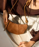 תיק מעור דגם נגה, התיק בעל צורה ייחודית וחצי עגולה, ונסגר ברוכסן. מכיל תא פנימי עם רוכסן וכיס פנימי קטן.