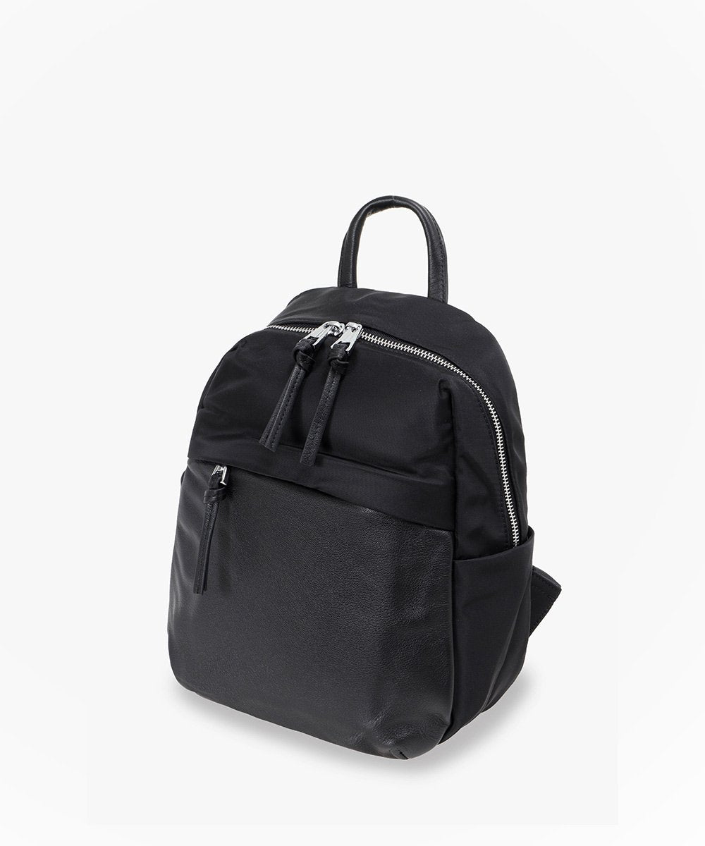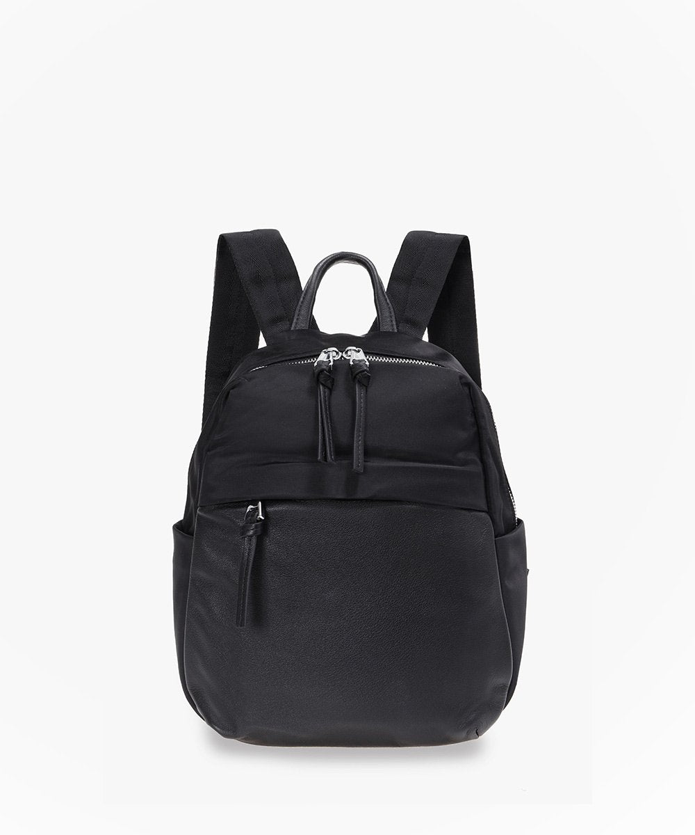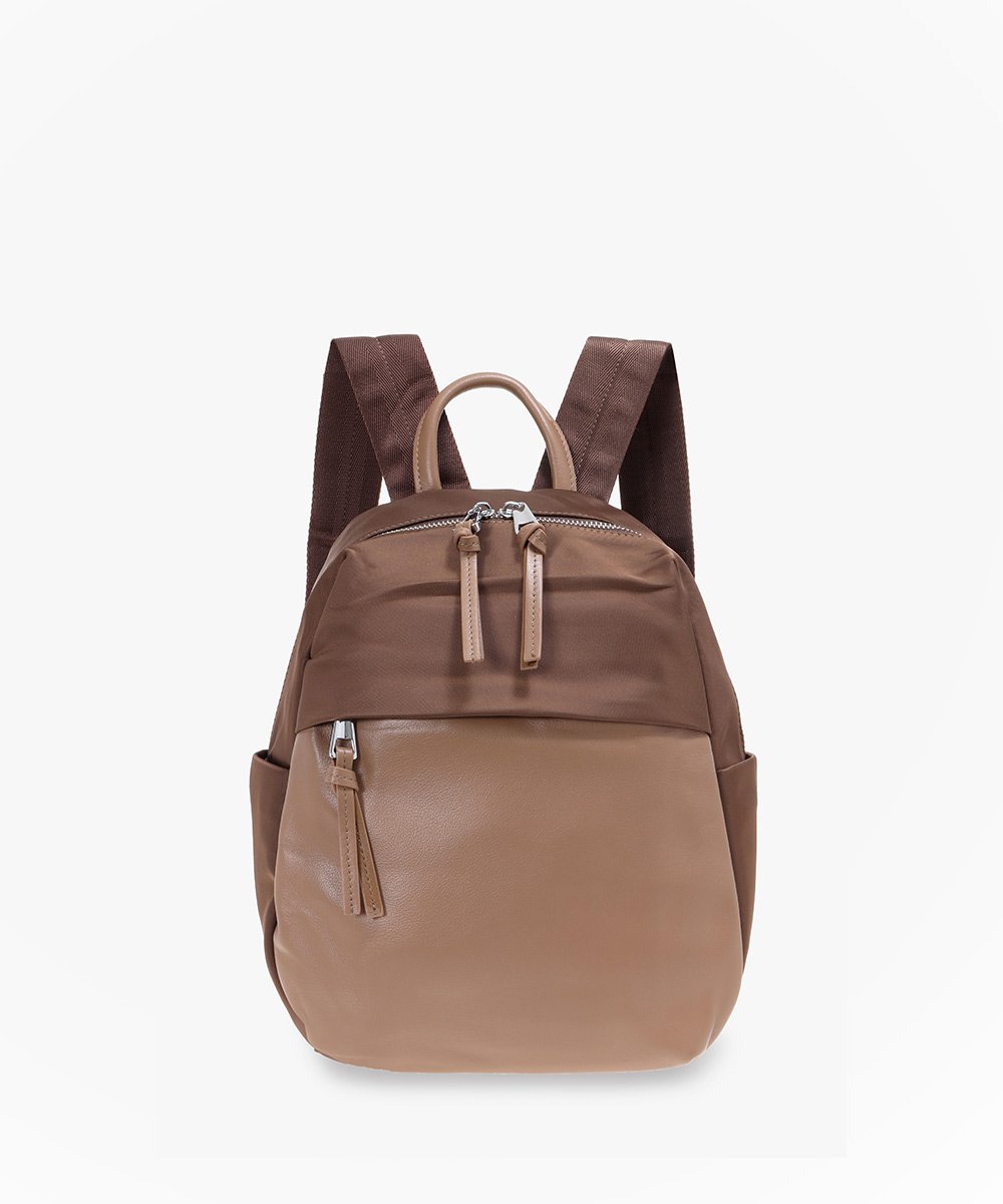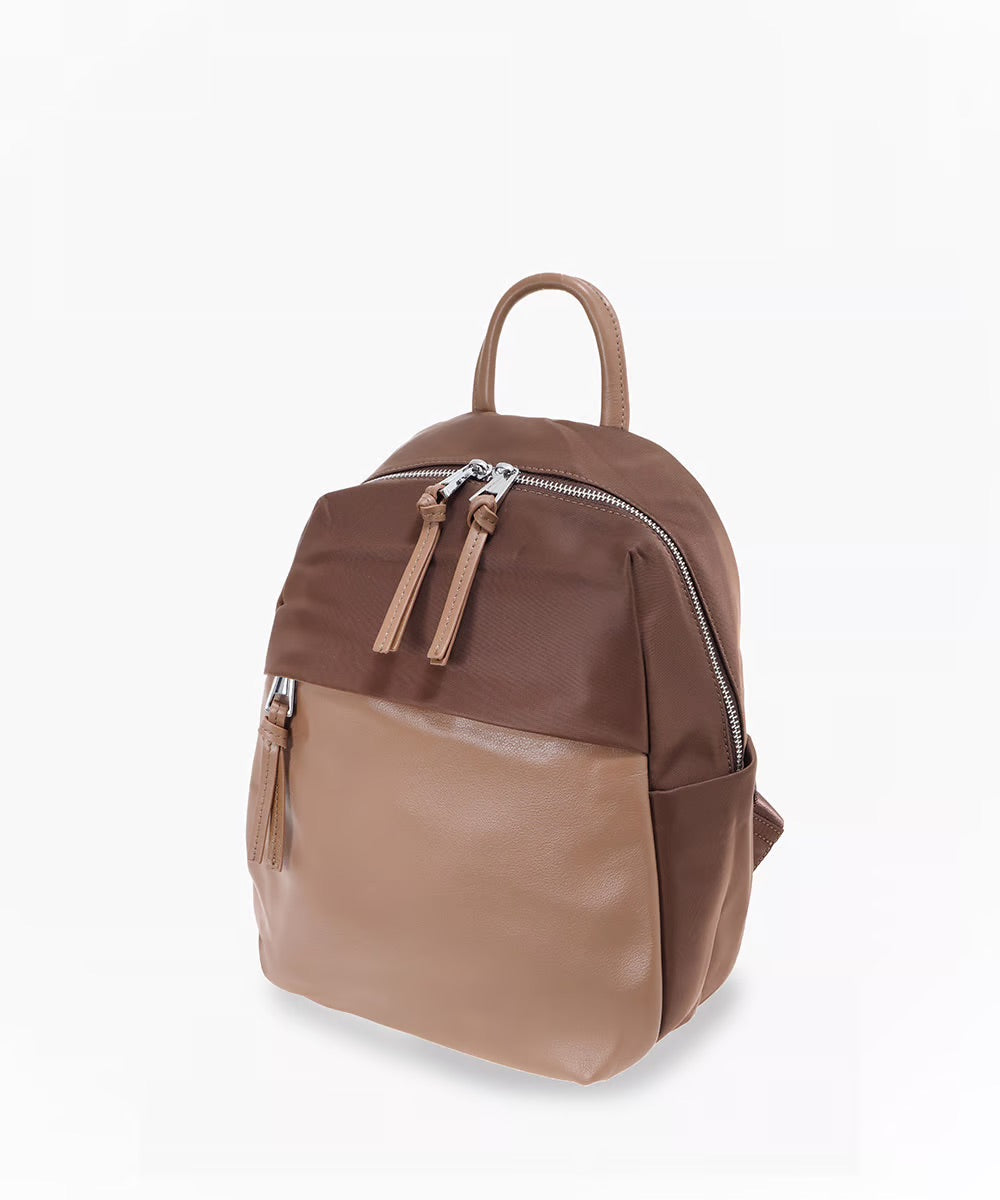 תיק גב עשוי בד משולב עור, מעוצב בצורה קלאסית ופשוטה, עם קווים נקיים ומינימליסטיים. לתיק יש רוכסן ראשי גדול ונוח לסגירה, 2 כיסים צדדיים קטנים לאחסון חפצים קטנים. הרצועות של התיק מתכווננות, כך שניתן להתאים את הגודל והנוחות למי שנושא אותו.
