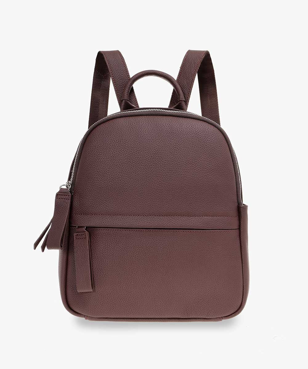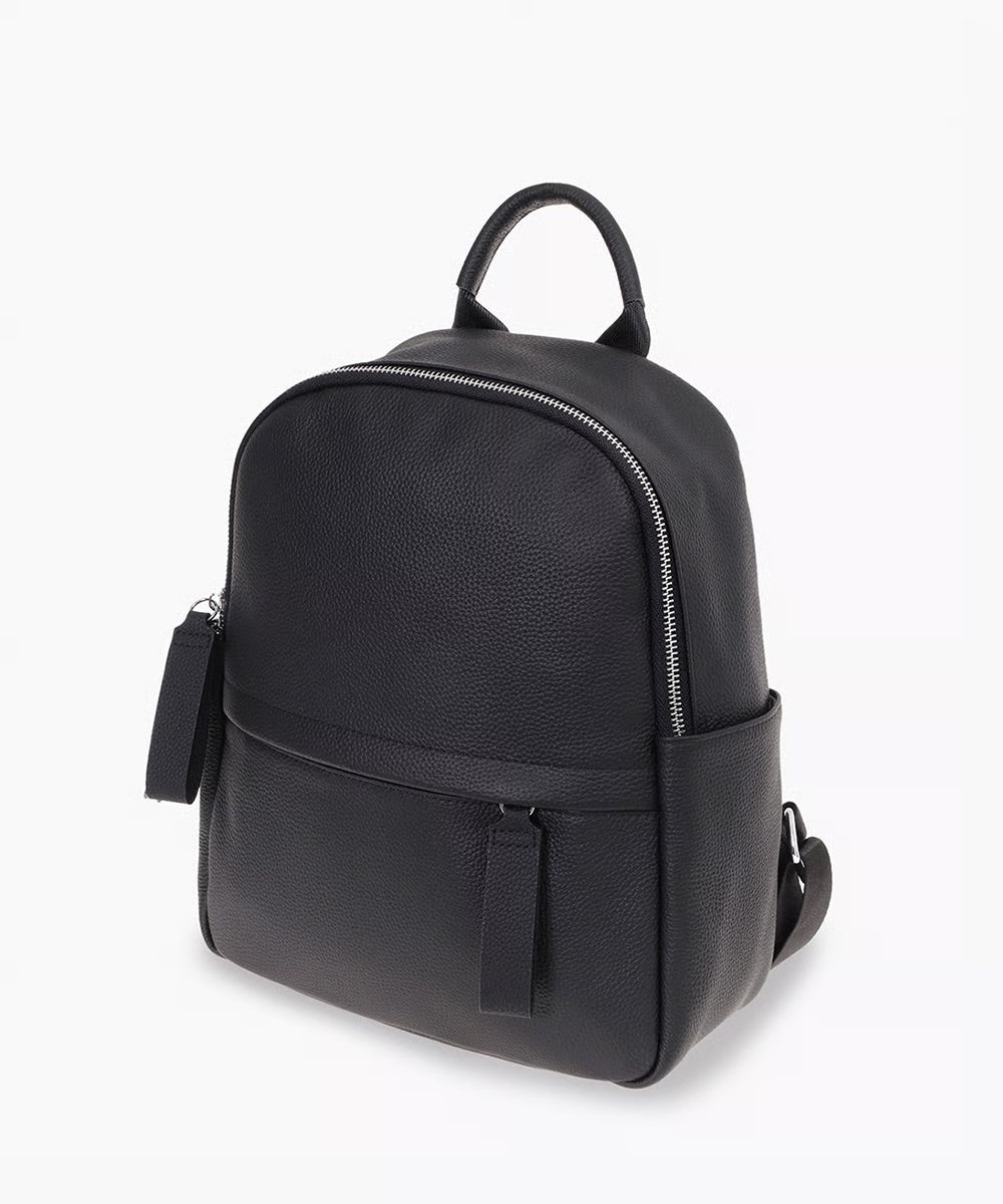 תיק גב עשוי עור, מעוצב בצורה קלאסית ופשוטה, עם קווים נקיים ומינימליסטיים. לתיק יש רוכסנים גדולים ונוחים לסגירה, וכיסים חיצוניים קטנים לאחסון חפצים קטנים. הרצועות של התיק מתכווננות, כך שניתן להתאים את הגודל והנוחות למי שנושא אותו.