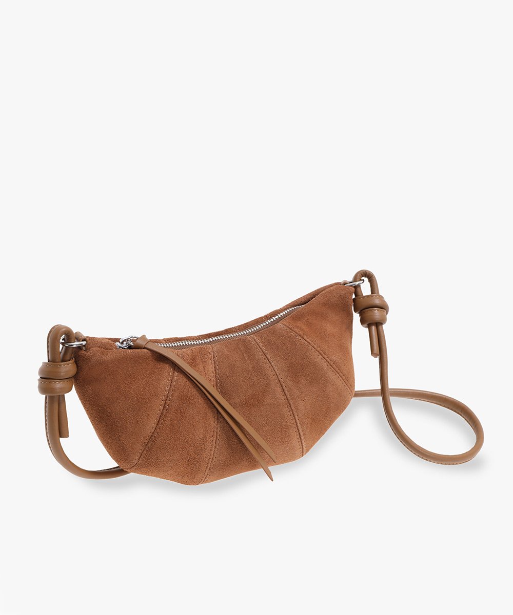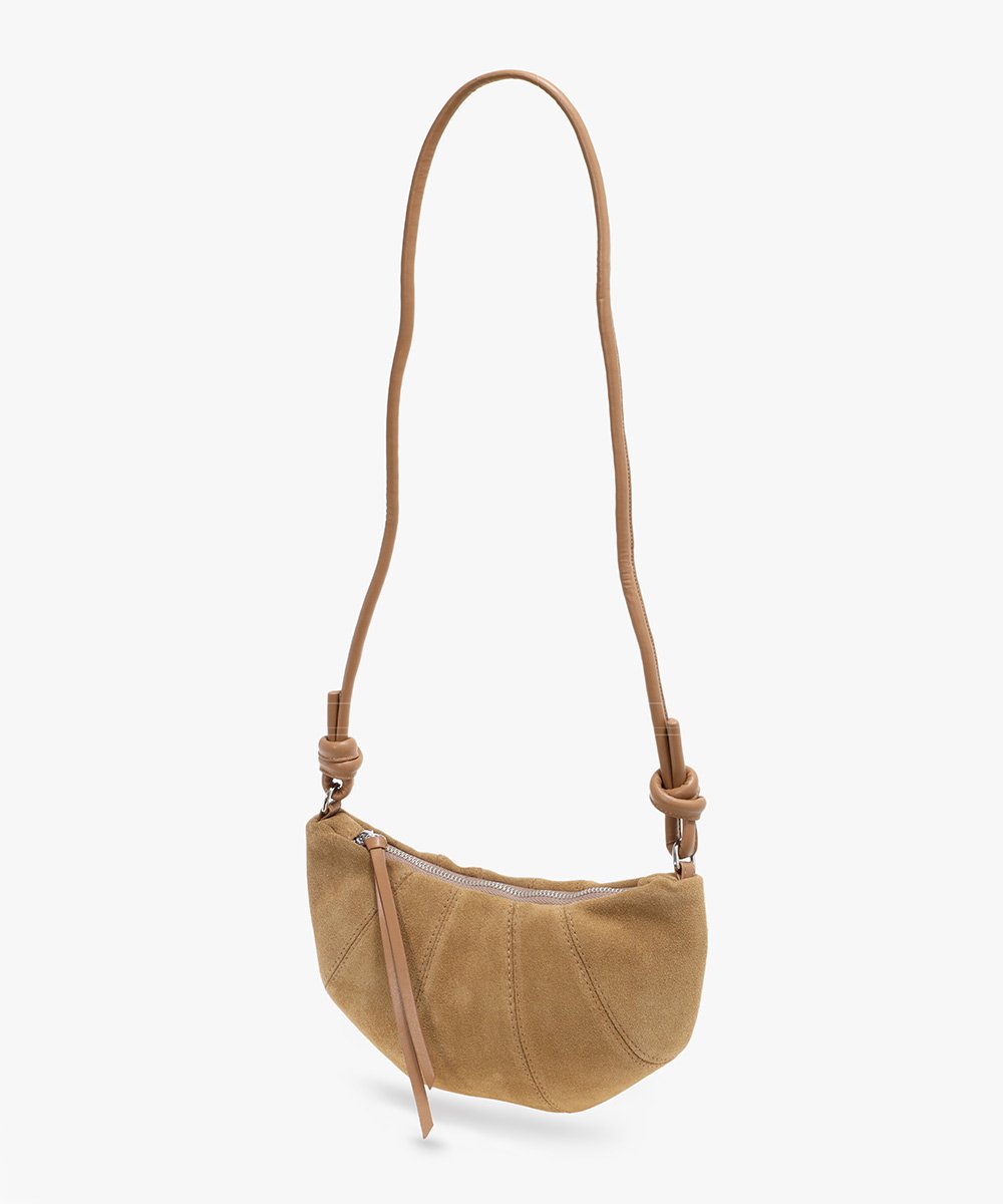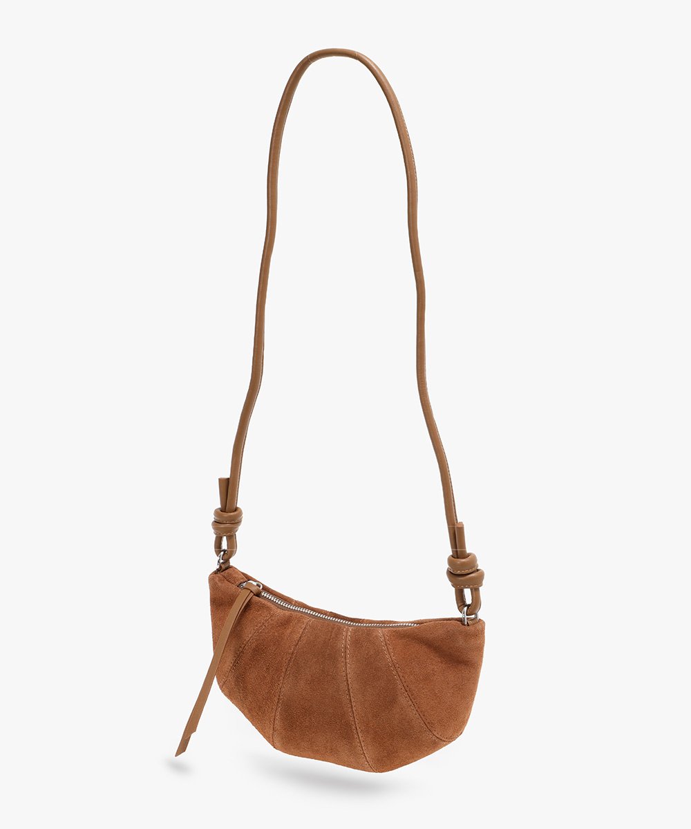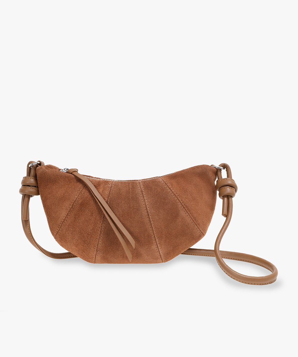 תיק מעור דגם נגה, התיק בעל צורה ייחודית וחצי עגולה, ונסגר ברוכסן. מכיל תא פנימי עם רוכסן וכיס פנימי קטן.