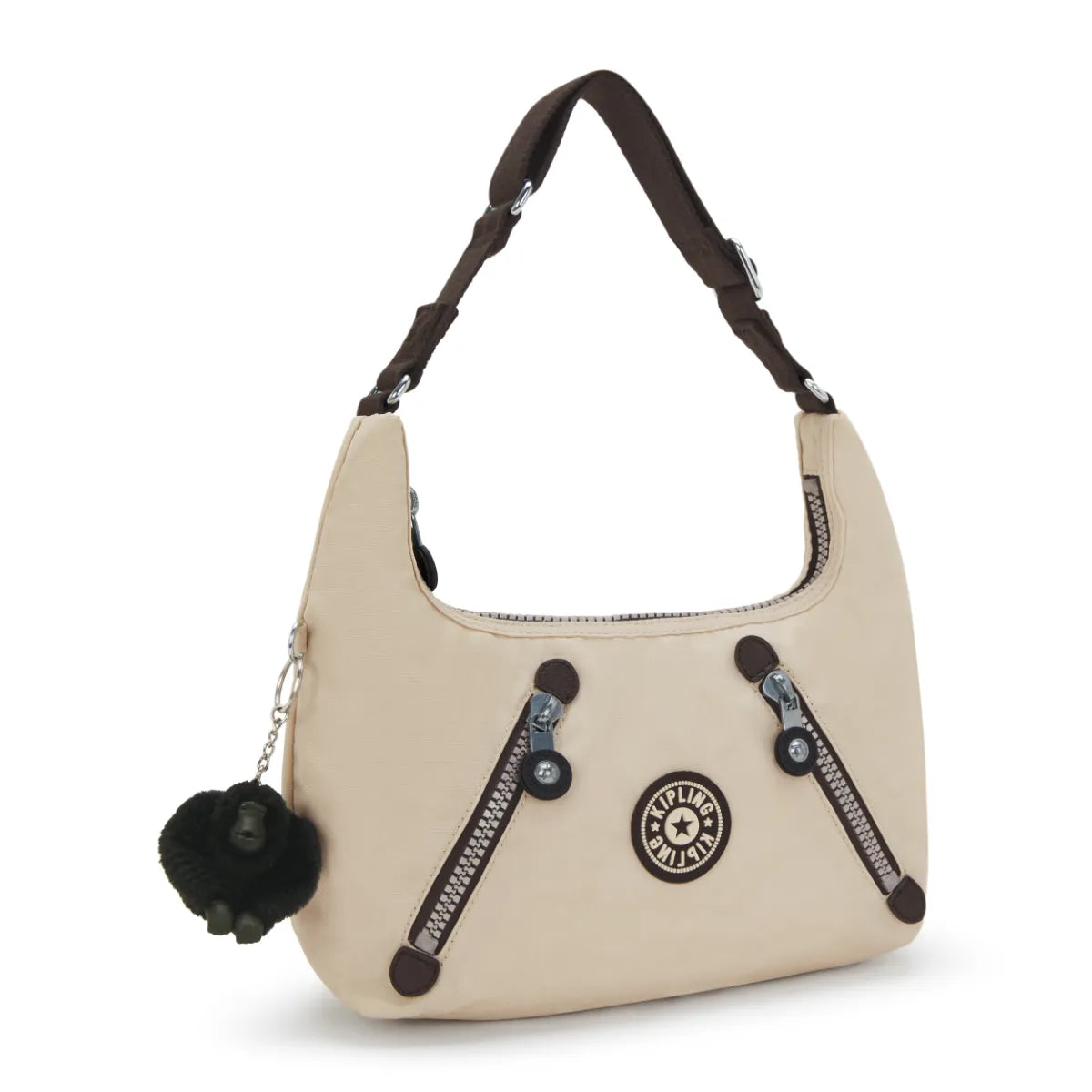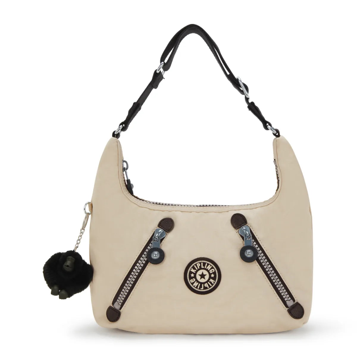 מבט מודרני על סגנונות מורשת שנות ה-90 שלנו עם צללית חצי סהר אופנתית, Nikki של Kipling הוא תיק הכתף עליו חלמת. יש לו תא ראשי דק עם כיס פנימי מרוכסן, בתוספת שני כיסים קדמיים עם רוכסן באלכסון לתוספת כישרון אסתטי. מושלם עבור ימים או לילות בחוץ.