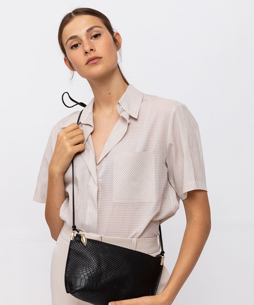 תיק מעור של המעצבת נטע שדה דגם שריקרק ערב.נרתיק עור מנימליסטי מאובזר בשני אטבים מוזהביםהמוברגים לפינות העליונות ומשמשים לחיבור שרוךהעור העידן המתפקד כרצועה מתכוננת. תיק ערב זה גזור מעורות רכים ועדינים בצבעי פסטלהנוטים להיות טבעיים- צהוב ירקרק, ורוד ניוד, קרמל ושחור מנוחש. עשוי עור נאפה